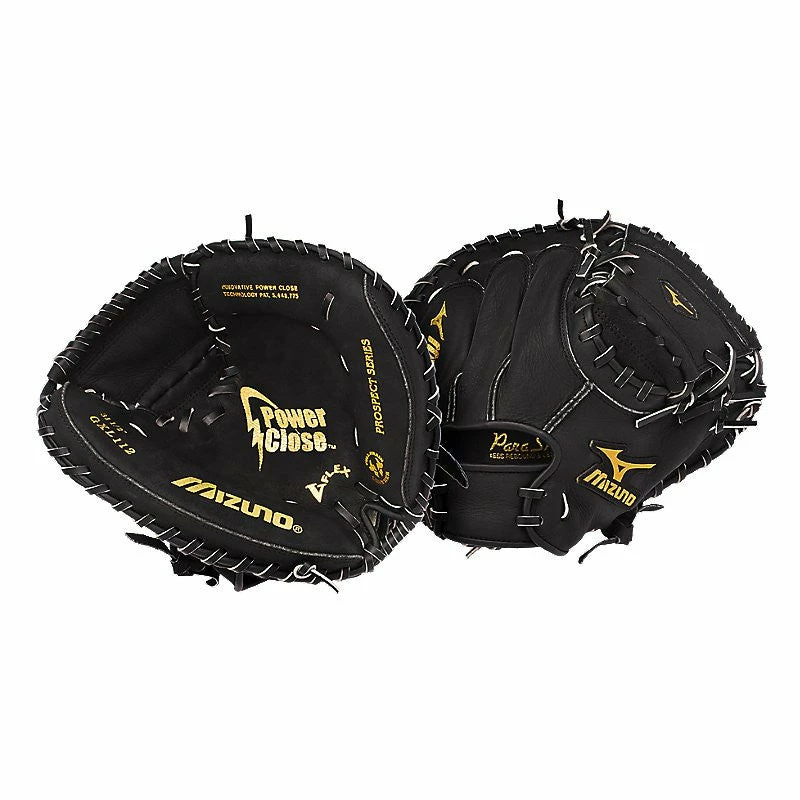 Mizunos patented PowerClose technology is unmatched in the industry. Others may try to duplicate but no technology closes as easily. Multiple technologies like Pocket2 PowerClose PowerLock V-Flex Hi-Low Lacing and SureFit Foam afford the youth, player the best options to make catching easy. Hi-Low Lacing increases flexibility throughout the web. The V-Flex helps initiate easy closure while the PowerLock makes it easier to close the glove and catch the ball.